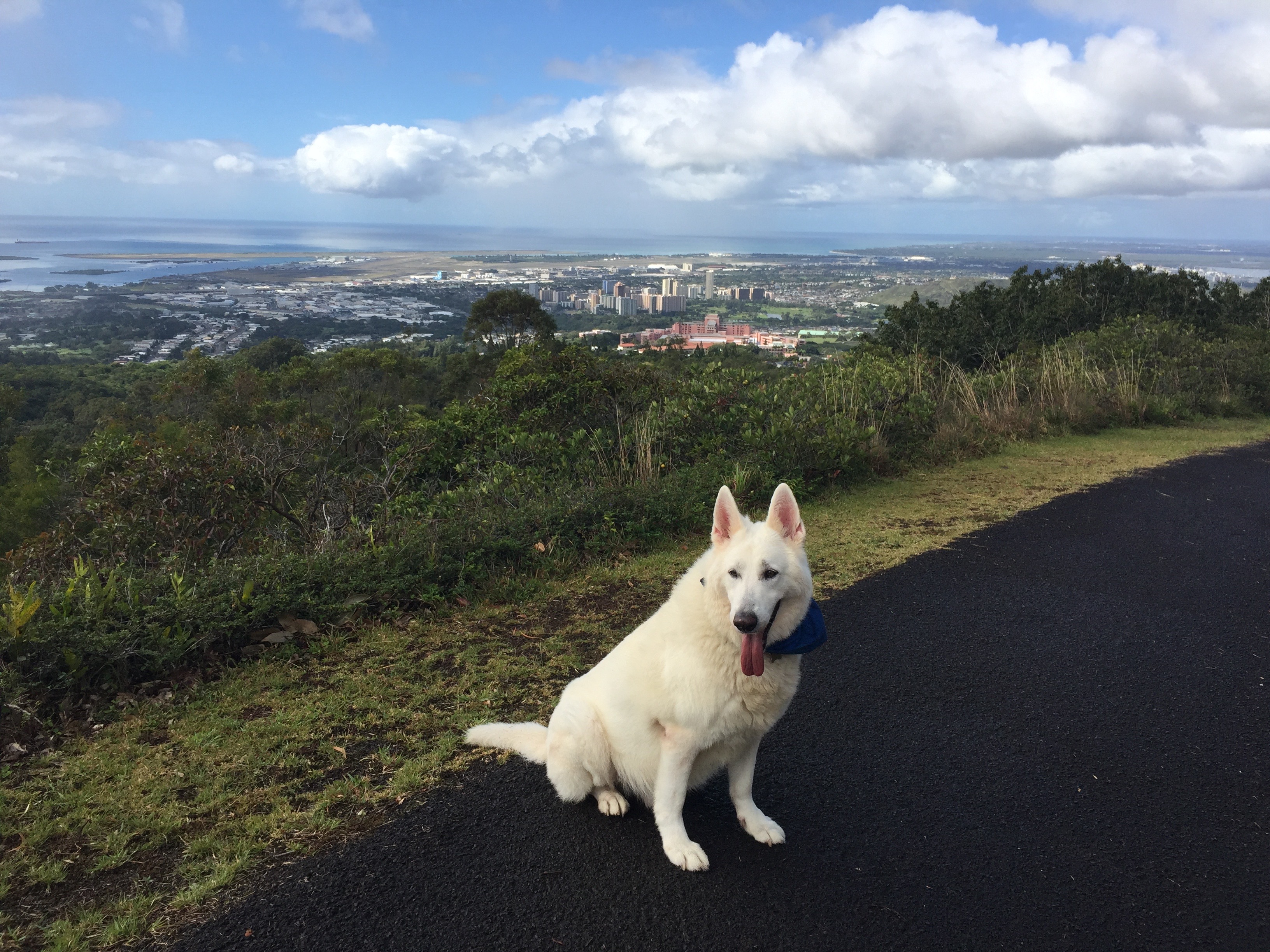 He loved balls and squeaky toys, but he didn’t like to share at all, stealing the other dogs’ toys, putting them on his bed, and growling if they complained. Hot dogs, roasted chicken, and dingoes were his favorite foods. He loved to go on walks and hikes, most recently on the Tripler Ridge trail, where he loved to sniff at everything along the way.